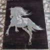 This is a high-quality, visually appealing rug that combines a classic animal motif with a modern, artistic flair. The rich black background and the detailed, flowing design of the horse make it a statement piece suitable for adding character and warmth to a variety of interiors.