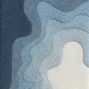 This is a hand-tufted woolen rug with a topographic or wave-like pattern. The design is abstract and features undulating, layered shapes in a gradient of blue and a light cream color.