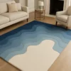 Coastal or Beach House: This is the most obvious and fitting choice. The rug’s wavy, layered pattern and its gradient of blues directly evoke the ocean and waves. Paired with natural materials like linen, jute, rattan, and light woods, it would create a serene and airy atmosphere. The light cream color in the rug mimics sand, completing the coastal theme.