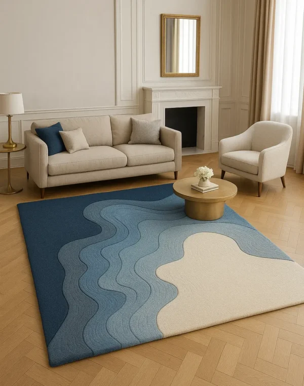 Hand Tufted Woolen Rug (Blue Waves) For Living & Drawing Room