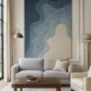 Japandi (Japanese + Scandinavian): This style blends the minimalist elegance of Japanese design with the cozy, natural elements of Scandinavian style. The rug’s calming blue tones and organic, flowing lines would complement the serene and functional aesthetic of a Japandi interior. It would pair well with light-colored woods, simple furniture, and natural textiles.